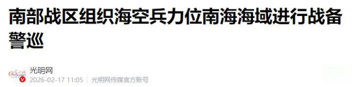 光明网——南部战区组织海空军力位南海海域进行战备警巡——2026年2月17日