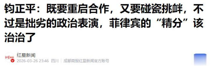 红星新闻——钧正平:既要重启市欢,又要碰瓷寻衅,不外是粗劣的政事饰演,菲律宾的“精分”该治治了——2026年3月26日
