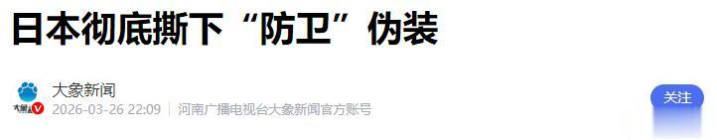大象新闻——日本透澈撕下“铩羽”伪装——2026年3月26日