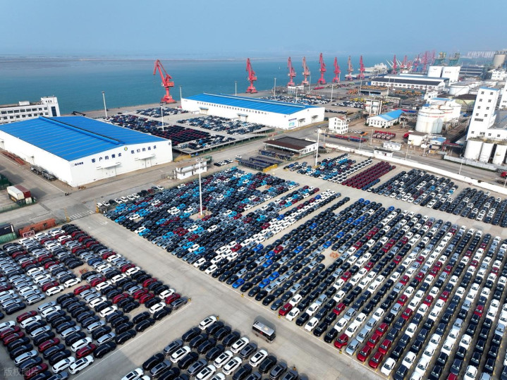 图 | 在江苏首连云港港东方港务分公司船埠,无数出口汽车集港准备装船外运