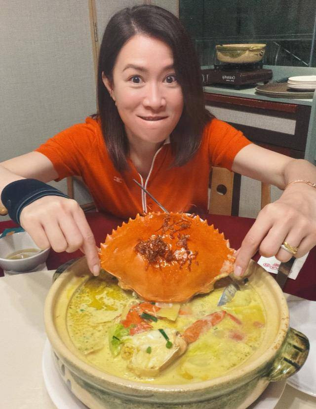 她直言来新加坡即是为了吃蟹,还好有司理东谈主提前订好了纯正的餐厅,否则列队齐排不上。