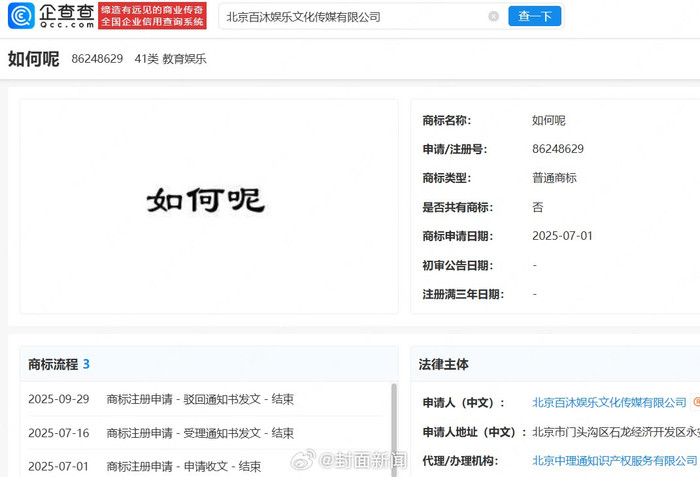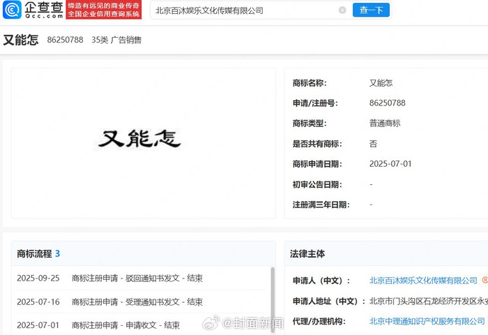 [#单依纯方注册李白二创歌词商标被驳回#]#单依纯方注册如何呢又能怎商标被驳回#3月29日,@李荣浩公开指控单依纯在深圳演唱会未经授权翻唱《李白》。随后,@单依纯发文说念歉。企查查APP泄露,单依纯经纪公司北京百沐文娱文化传媒有限公司曾苦求注册“如何呢”、“又能怎”商标,金佰利app官方版下载苦求时分为2025年7月,2025年9月被驳回。2025年12月,单依纯建立北京自来卷音乐师作室(个东说念主独资)。#如何呢又能怎##单依纯说念歉#