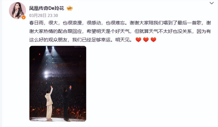 3月28日,凤凰神话厦门演唱会突遇暴雨,却不测拔擢了全场最出圈的上演名神情。