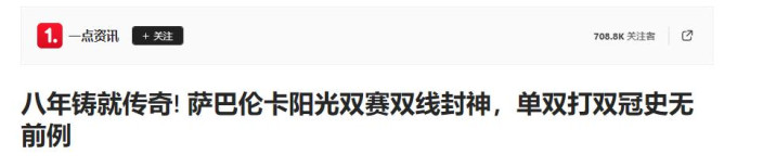 此次夺冠对萨巴伦卡而言,道理超卓,也让郑钦文和总共这个词网坛堕入千里默。