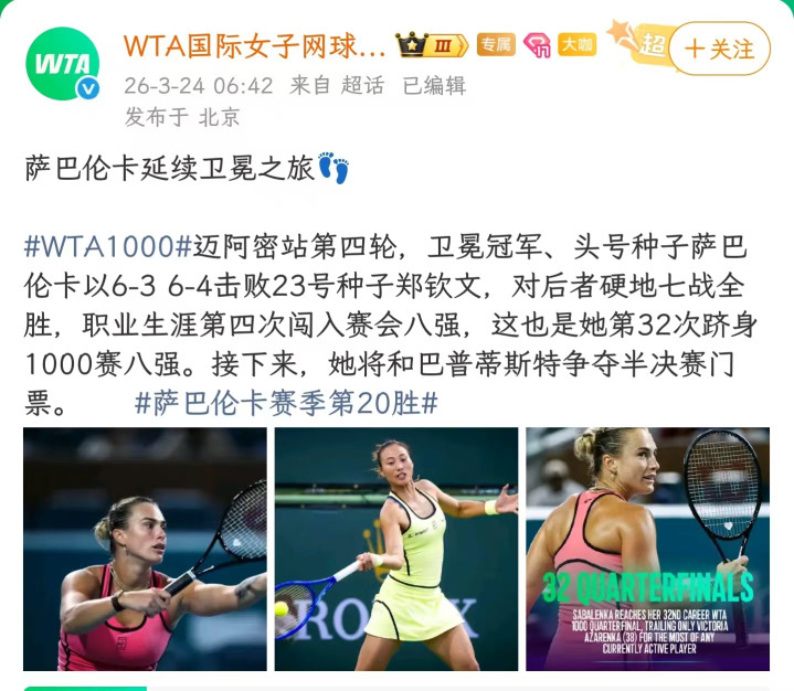 本文信源来自泰斗报谈:【新浪微博、WTA官方、不雅察者、少许资讯】等(夺目信源附在著述末尾)。为进步著述可读性,细节可能存在润色,请千里着安宁阅读,仅供参考!