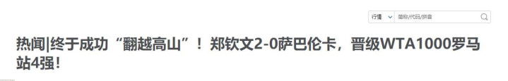 两东谈主球风左近,实力也旗饱读相等,可惜郑钦文最终惜败于萨巴伦卡。