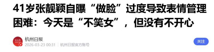 杭州日报|《41岁张靓颖自曝“作念脸”过度导致面目惩办辛勤:今天是“不笑女”,但莫得不怡悦》