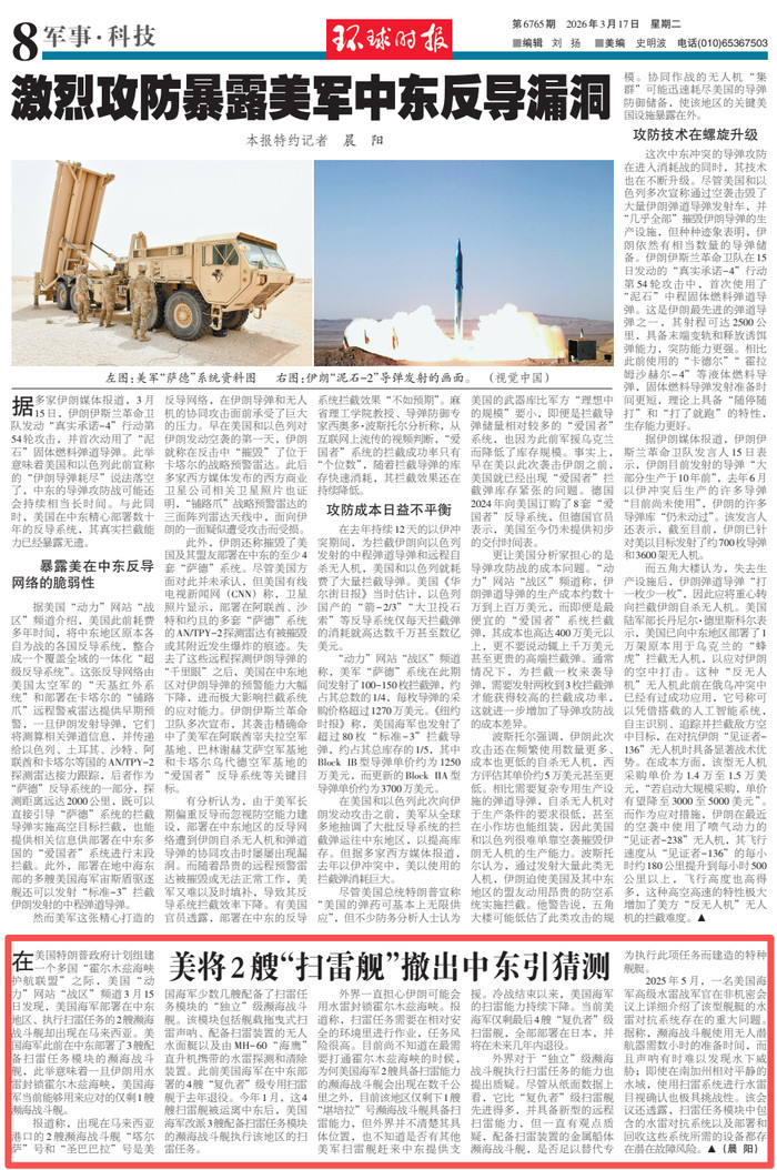 金佰利国际娱乐 好意思军2艘“扫雷舰”撤出中东引料到