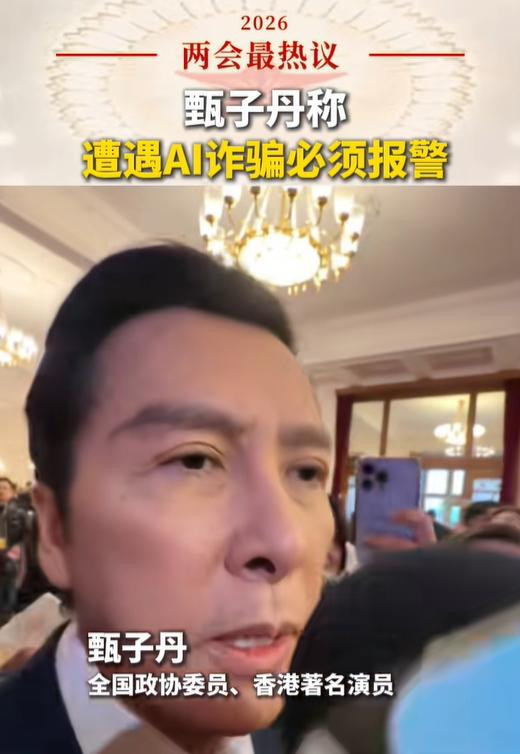 针对AI乱象,甄子丹在两会上直言遇到诈欺必须报警。