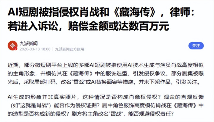 只不外,有部分短剧生成的主角形象与演员肖战高度接近。