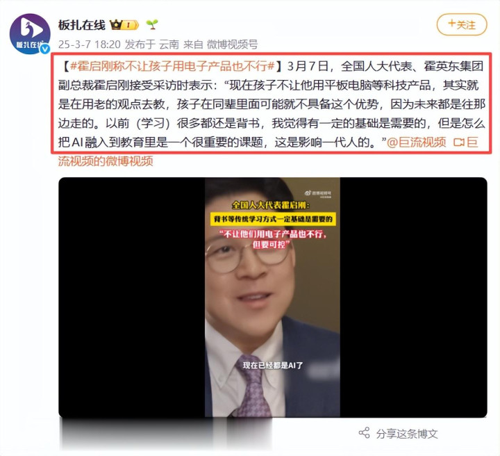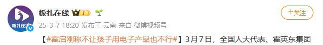 板扎在线|霍启刚称不让孩子用电子产物也不可